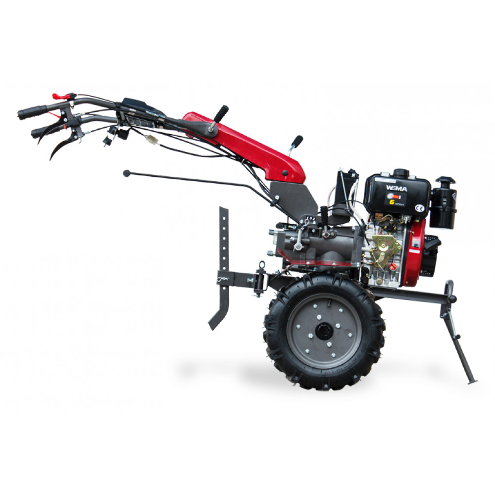 Мотоблок Weima WM1100AE-6 КМ оснащена новою КПП, з можливістю вмикання пониженних передач, відповідно отримуємо 4 передачі вперед і 2 назад, на ньому встановлений двигун Weima WM178FE з електростартером, що полегшує запуск двигуна, а також диференціал для полегшення розвороту. У Україні на сьогодні немає аналога цьому мотоблоку, хоч він і є вдосконаленою моделлю стандартного 105 мотоблоку. Тепер не потрібно купувати і окремо встановлювати зменшувач ходу. Мотоблок Weima WM1100AE-6 КМ DIFF став маневреніший, їм стало зручніше виконувати точні роботи, де треба з особливою акуратністю пройти по міжряддю обробивши та не пошкодивши при цьому культуру. На зниженій передачі високий момент, що крутить, дозволяє виконувати роботи навіть на важкому грунті, такі як викопування або підгортання картоплі. Крім того ця серія мотоблоків також є в комплектації з разблокираторами диференціалів (фрикціонів). Усі моделі WM1100АЕ-6 мають важіль відключення валу відбору потужності, що дозволяє з легкістю запустити агрегат зі встановленою косаркою, активною фрезою, помпою для перекачування води або копалкою, не прокручувавши вал з механізмом. Двигун мотоблоку має можливість запуску електростартером і ручним приводом.Ті хто спробував в роботі, дійсно оцінили належним чином усі переваги нової моделі мотоблоку Weima WM1100AE-6 КМ.